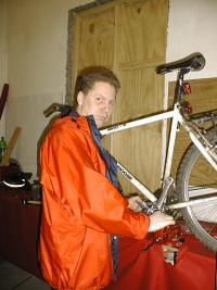 夜8時くらいからミーティングをやってるから,それくらいに来たら?とアイス ランドマウンテンバイククラブ(IFHK)の会計兼インターネット担当のポールに 事前にメールで言われていたので7時半くらいにYHを出た.クラブハウスは旧 市街の一角にあり,YHとは町の反対側だ.古い倉庫を改造したクラブハウスは とっても快適そうで羨ましかった.うちのBOXもあれくらい大きかったらいい のになあ.一部に2階が作ってあってその上がテーブルと椅子があるくつろげ る場所になっていた.1階は作業場みたいになっていて,新しいマウンテンを1 台組み立てているところだった.